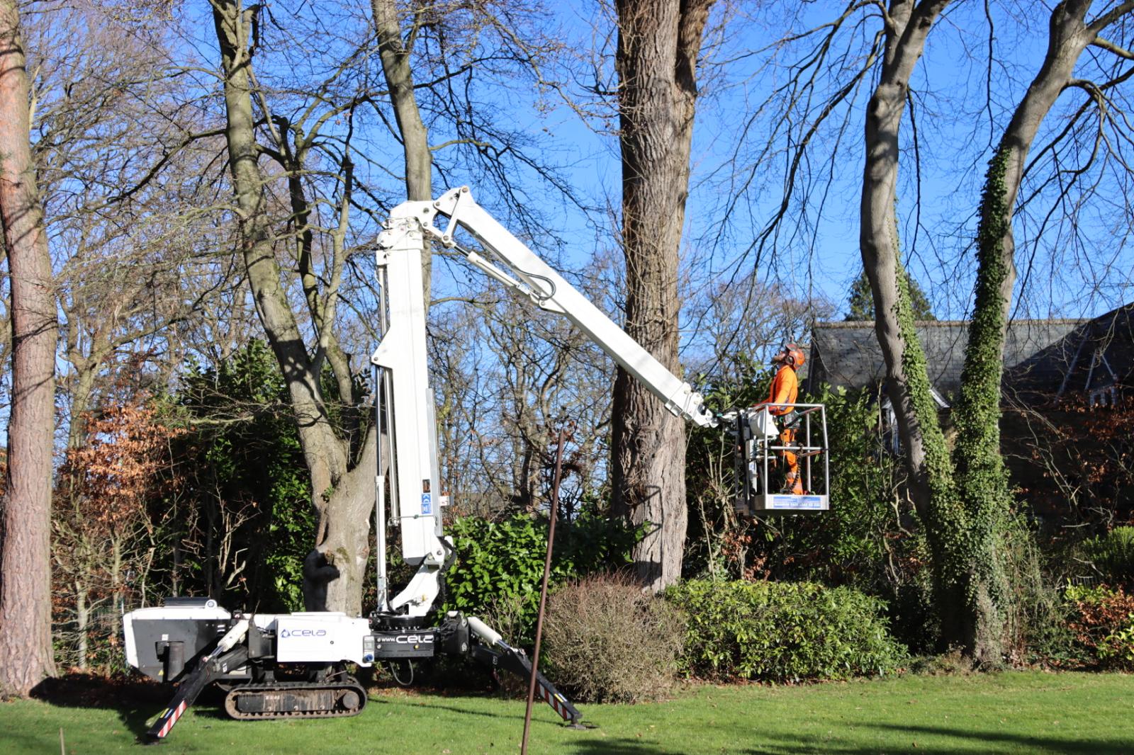 Specialist removal of mature or dangerous trees using rigging systems, cranes, or MEWPs where needed.